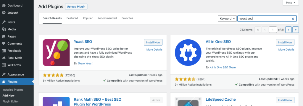 •Installation: Go to Plugins > Add New, search for “Yoast SEO” (or “Rank Math”), click “Install Now,” and then “Activate.” Most SEO plugins come with intuitive setup wizards.