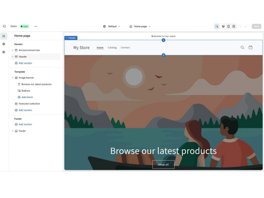 This part is all about creativity. Here, you’ll add colors, write texts, choose fonts, and insert photos. You can have fun and design your online shop exactly how you like it.