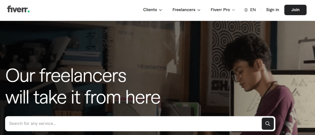 Pricing: Starts at $5 per gig, with premium packages ranging into hundreds. Most designs average between $20–$150.
