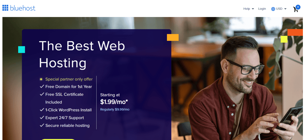 Pricing: Starts at $1.99/month with Bluehost (billed yearly). While WordPress is free, you will need to pay for hosting and a domain.