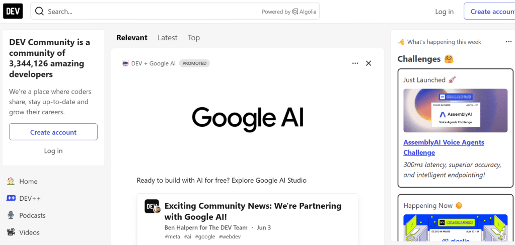 If your content skews technical—think tutorials, frameworks, or AI use cases—DEV.to is where your audience hangs out.