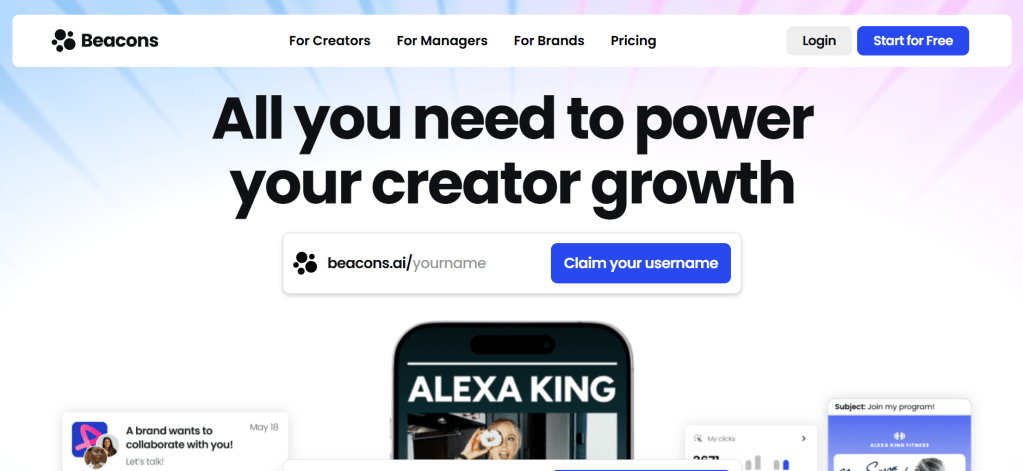 It goes beyond link-in-bio. With Beacons, you get a digital storefront, email tools, affiliate tools, and even media kit templates.