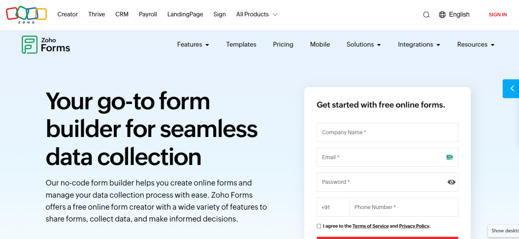 3. Zoho Forms – Best for Businesses Using the Zoho Ecosystem