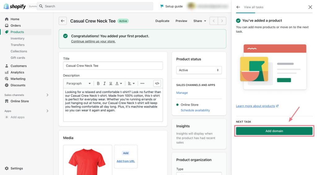 Once done, hit Save and just like that, your first product is live in your store (though not yet visible to the public).