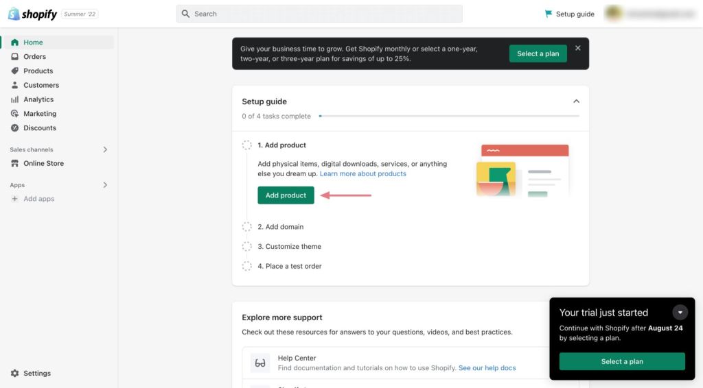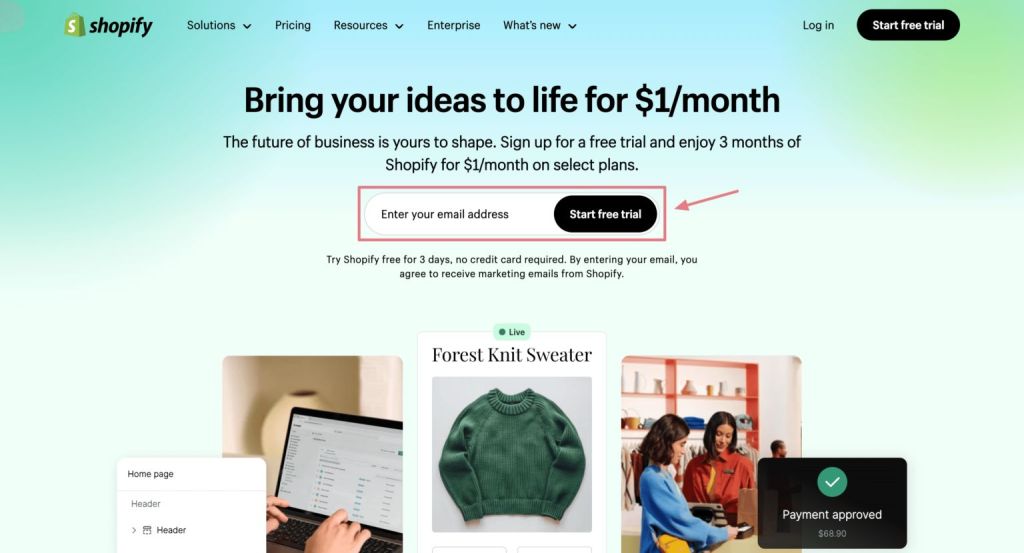 To get started, head over to Shopify’s website and click Start Free Trial.