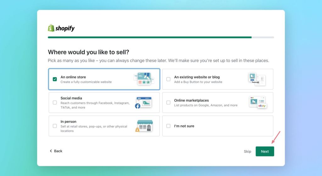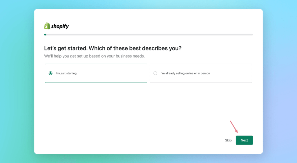 You’ll be asked a few questions about your business experience and store idea. Choose a name (you can change it later as well),